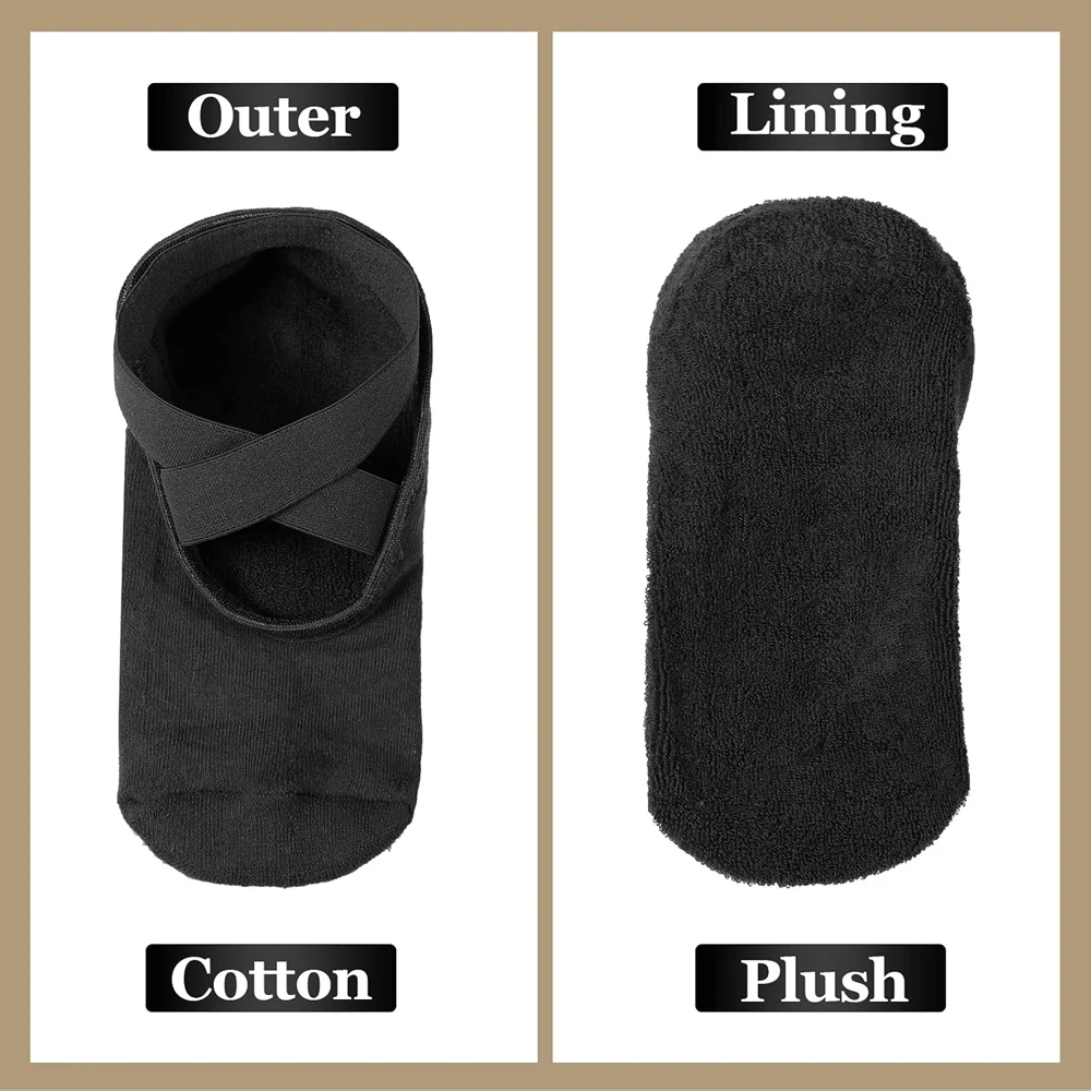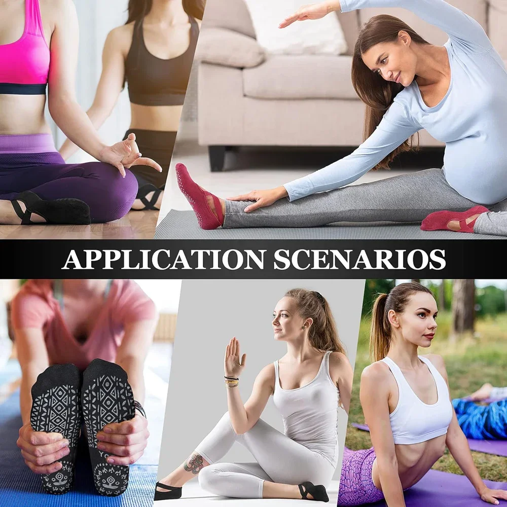 3 Pairs Bandage Yoga Socks for Women Pilates Ballet Dance Cotton Socks Non-Slip Sport Sock Gym Workout Slipper Running Grip Sock